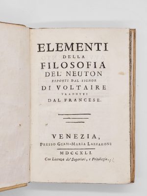 VOLTAIRE François Marie Arouet de Elementi della filosofia del Neuton. Tradot...