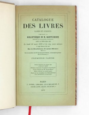 Ajouter au panierSAINTE-BEUVE Charles-Augustin Catalogue des livres rares et curieux composant l...