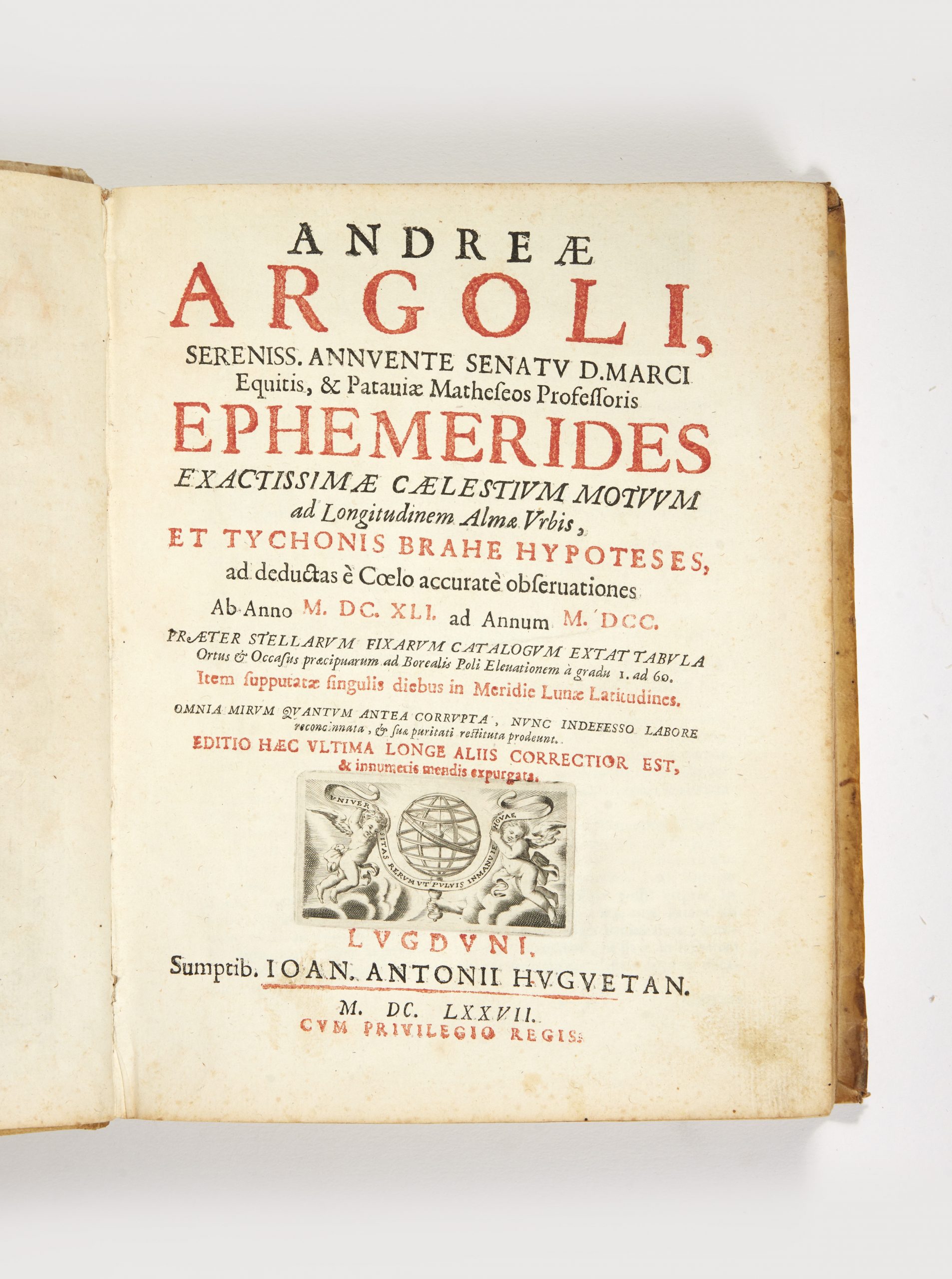 “Argoli’s extensive Ephemerides… which were based on the observations of Tycho Brahe, gave a permanence to his reputation that his other writings would scarcely have achieved” (DSB).