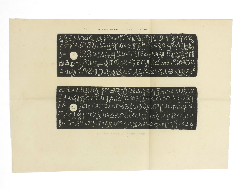 This copy contains 4 facsimiles of a land donation contract (Grant of Pallava) in a pocket, not a map.