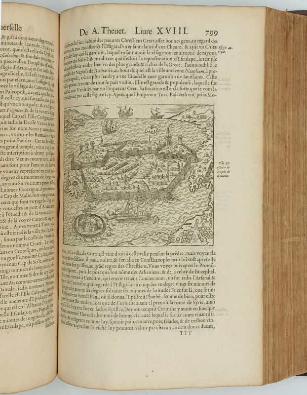 “On the verso of leaf 908 is a plate of Guanabara Bay and on leaf 925 a dominical prayer in Tupi (…) The Brazilian section of the Cosmographie is very important; in a sense it is more complete than the Singularitez. The description of the Indians’ attire, the information about the Tupinambá, their beliefs, etc., are much more complete and among the best existing.