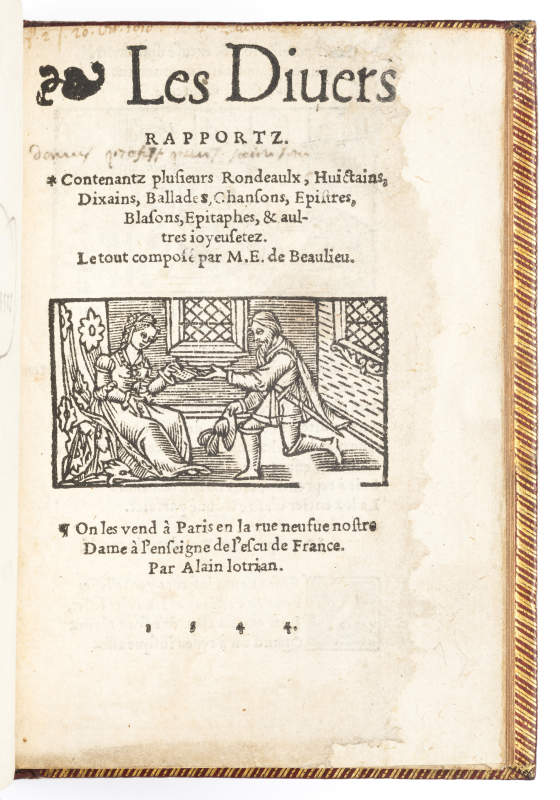 Rarissime édition de 1544. Ce « recueil fort licencieux » (Brunet) est imprimée en lettres rondes, il est admirablement illustré de 15 vignettes gravées sur bois dont un sur le titre et 14 dans le texte, « représentant pour la plupart des scènes galantes » (Brun)