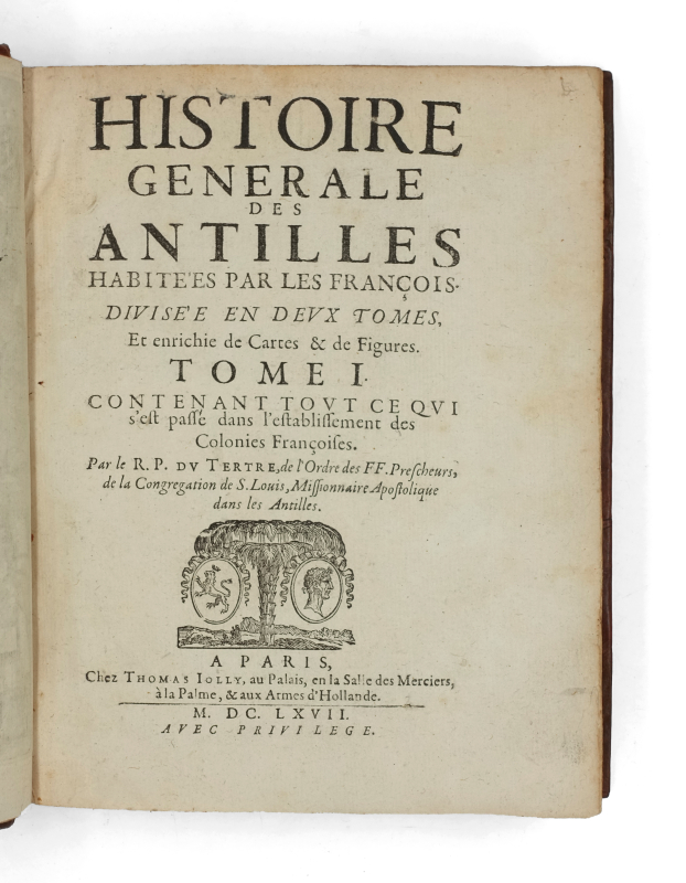 « Cet ouvrage est très difficile à rencontrer complet. Le P. Dutertre dit dans sa préface qu’il avait fait imprimer son livre en 1654, parce qu’on lui avait dérobé sa copie. Pendant qu’il le faisait imprimer, le Père R. Breton fut prié, de la part de M. de Poincy, de donner son vocabulaire de la langue des sauvages, et quelques mémoires qu’il avait composés, à une personne inconnue, qui désirait écrire une histoire des Antilles. Il sut depuis que c’était le sieur Rochefort, ministre de Rotterdam, qui, après avoir reçu le vocabulaire du P. Breton, et informé de l’impression de son ouvrage, fit paraître le sien en 1658, sous le titre de Histoire naturelle des Antilles de l’Amérique’. » (Leclerc).