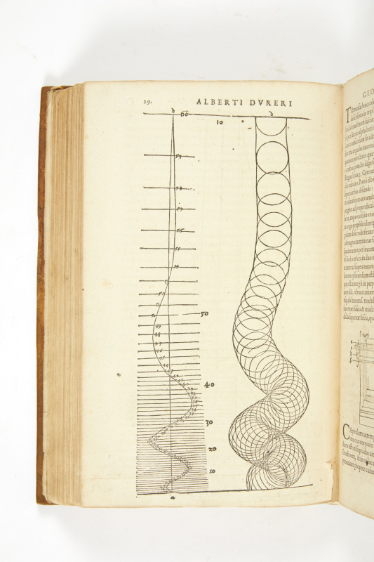DÜRER Albrecht Les Quatre livres de la proportion des parties & pourtraicts des corps humains. [Relié avec]: Institutionum geometricarum libri quatuor, in quibus, lineas, superficies, & solida corpora, ita tractavit.