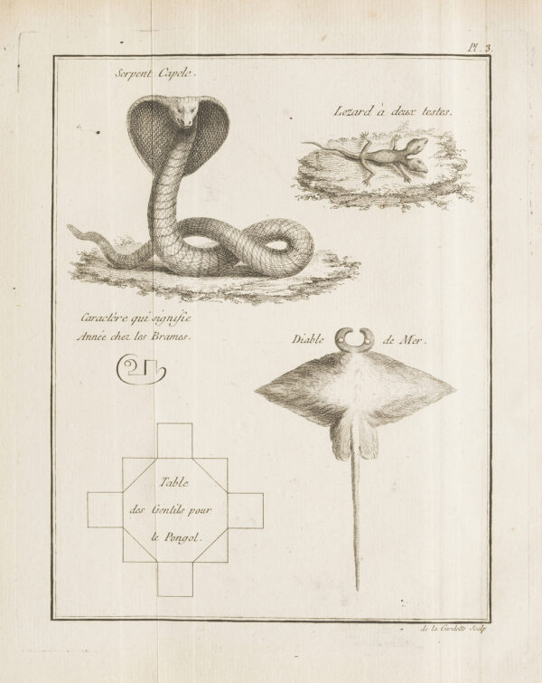 « The turning point in Le Gentil’s career was his commission to observe the 1761 transit of Venus at Pondicherry, India. Because the English had captured that settlement just as he arrived in 1760, Le Gentil was obliged to witness the transit from shipboard, without any possibility for scientifically significant observations. Since another transit of Venus was to take place in 1769, Le Gentil resolved to remain in the East in order to complete his mission… Le Gentil’s major work was the two-volume Voyage dans les mers d’Inde. The first volume was devoted to India and, after a discussion of the customs and religion of its inhabitants, dealt at considerable length with the history of Brahman astronomy… The second volume was devoted to the Philippines, Madagascar, and the Mascarenes » (DSB).