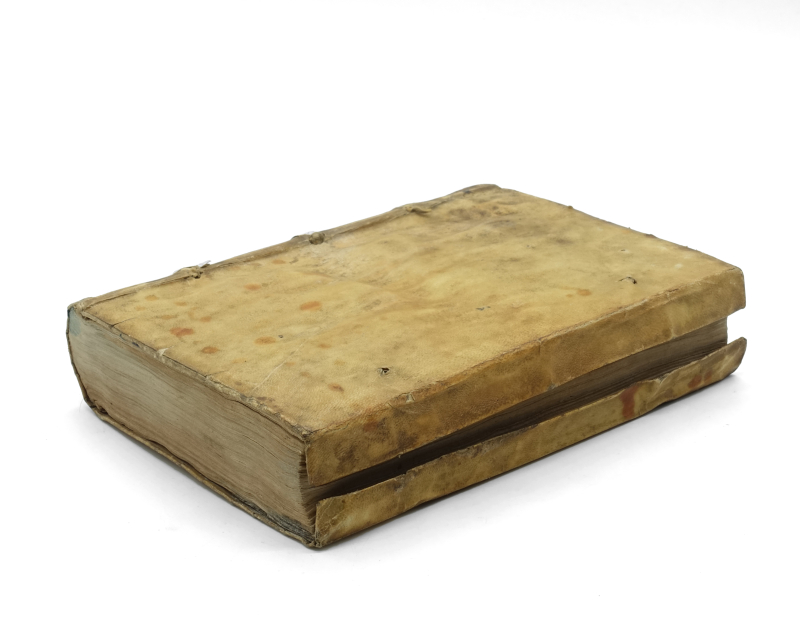 Extrêmement rare sur le marché, nous n’avons pu retrouver que trois exemplaires de cet ouvrage : un vendu chez Sotheby’s (avec « La Rochelle » sur la page de titre, mais avec un tirage indéterminé, sans la dernière page blanche, vendu en 1963), un autre exemplaire chez Sotheby’s en 1965 (sans le nom « La Rochelle », relié en cuir de veau d’époque mais incomplet, sans l’index et l’errata), et un dernier exemplaire chez Bloomsbury en 2009 (avec le nom « La Rochelle », relié en cuir de veau moderne, sans la dernière page blanche). Le présent exemplaire est donc le seul que nous ayons pu retrouver dans une reliure en vélin souple d’époque et complet avec l’index, l’errata et la dernière feuille blanche.