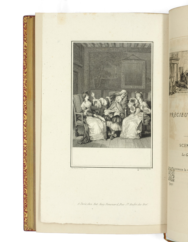 Très bel exemplaire, parfaitement relié par Lortic, auquel on a ajouté 79 figures gravées d’après Desenne, Coypel, Vernet, Johannot, et Moreau le jeune (de ce dernier toutes les gravures sont avant la lettre), y compris un facsimilé d’un reçu autographe de Molière dans le volume I.