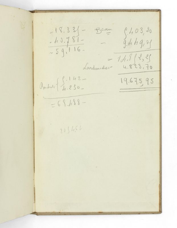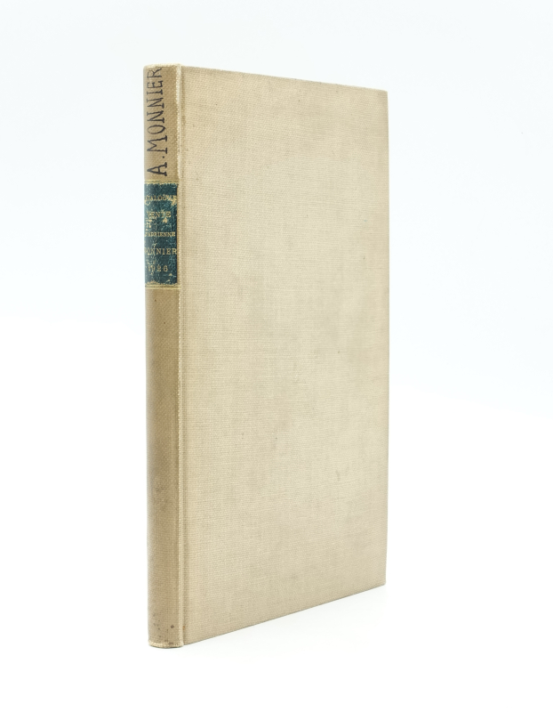In-8 (220 x 140 mm) 100 pp, entièrement interfolié. Bradel de percaline beige, pièce de titre de maroquin vert, ‘A. Monnier’ manuscrit en tête (reliure de l’époque).