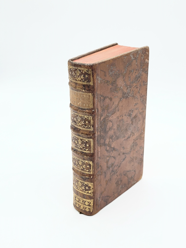 2 parties en un volume in-12 (166 x 94 mm) de XI pp., 264 pp., 4 planches gravées hors texte pour le volume I ; XII pp., 284 pp., planches 5 à 7, pour le volume II. Basane marbrée, dos orné, tranches rouges (reliure de l’époque).