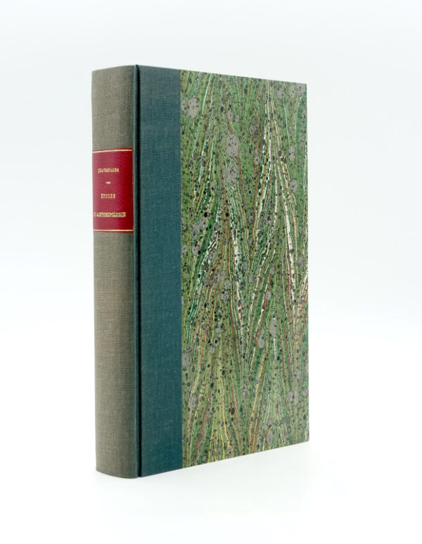 In-8 (236 x 147 mm) de XII, 644 pp., 16 pp. (cat. éditeur), 1 carte dépliante. Demi-toile verte moderne, couverture conservée.
