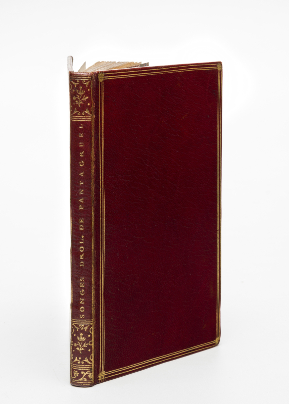 Le titre du livret revendique, abusivement, la paternité de Rabelais pour mieux allécher le public. Ces images loufoques, ces figures hybrides s’inspirent des drôleries gothiques, de la mode des grotesques, des oeuvres de Brueghel, non sans aborder de façon insidieuse les polémiques confessionnelles visant l’Église romaine: un pantin est affublé de la mitre, un autre de ce qui ressemble fort à une tiare; un troisième, éléphantesque, esquisse le geste de la bénédiction… « On sait aujourd’hui que l’imprimeur Richard Breton était acquis aux idées de la Réforme en tant que calviniste dont les multiples activités couvraient celle de propagandiste de l’Évangile » (Wildenstein, L’imprimeur-libraire Richard Breton et son inventaire après décès, 1571, in Bibliothèque d’Humanisme et Renaissance, XXI, 1959, pp. 364-379).