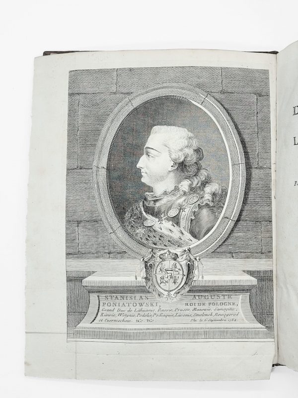 Bel exemplaire, auquel on a ajouté un beau portrait de Stanislas Auguste Poniatowski, roi de Pologne, à qui l’ouvrage est dédié.