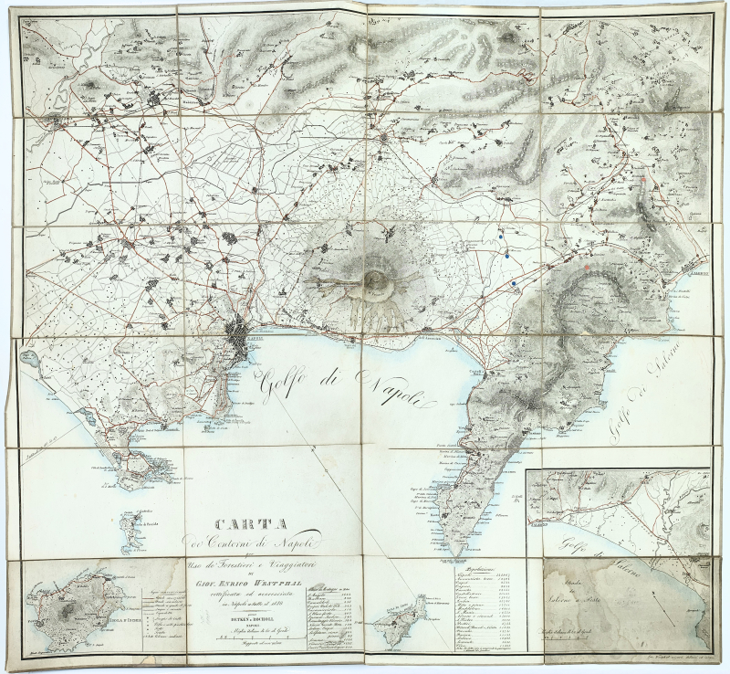 Seconde édition corrigée et augmentée. Cette brochure accompagnait le deuxième tirage de la carte des environs de Naples de Westphal.